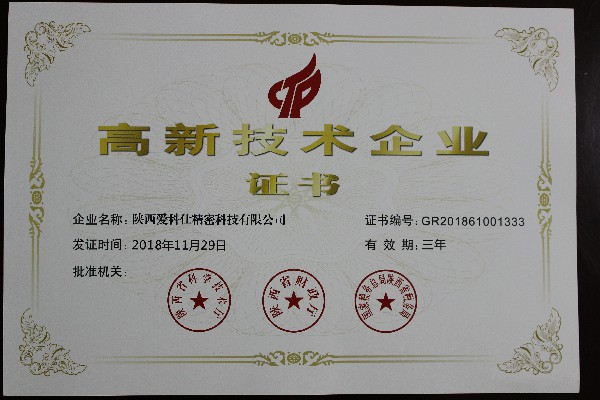 近日,核昌公司控股子公司陜西愛科仕精密科技有限公司經由陜西省科學技術廳、陜西省財政廳及國家稅務總局陜西省稅務局組成的陜西省高新技術企業認定管理工作領導小組評審,榮獲陜西省...