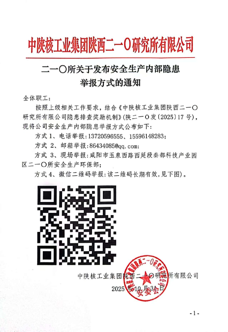 關于發布安全生產隱患內部舉報方式的通知